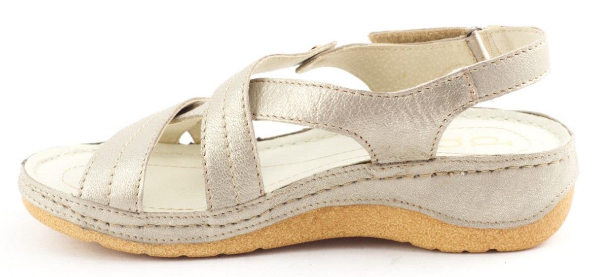 Prirodna koža vani i iznutra jamči izdržljivost, dobru ventilaciju i udobnost upotrebe tijekom dana. Veličanstveni, ali stabilan klin pruža određeni korak i elegantan izgled bez odustajanja od udobnosti. Zlatna boja čini sandale savršeno odgovaraju ljetnim haljinama, Capri hlačama ili prozračnim suknjama, dajući stil stila.