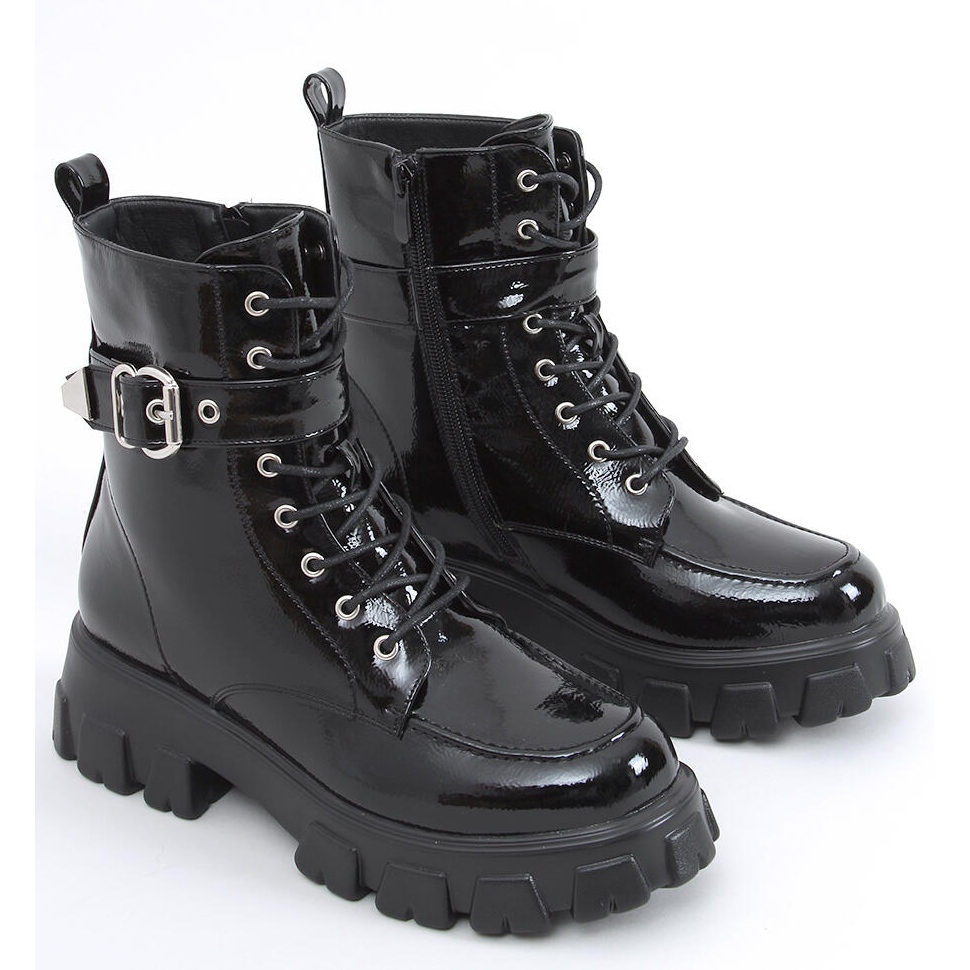 Predstavljamo Addi Black lakirane gležnjače koje su savršen spoj stila i udobnosti! Ove crne radničke cipele s visokim potplatom privlače pozornost zahvaljujući ekstravagantnom lakiranom završetku. Savršene za svakodnevnu upotrebu, one su ne samo moderne, već i funkcionalne - klasično vezane i opremljene praktičnim patentnim zatvaračem sa strane gornjeg dijela.