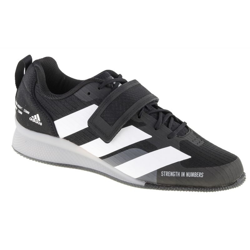 Adidas Adima dizanje utega 3 cipele (GY8923) - obuća za profesionalnu obuku za muškarce, stvorena za trening snage i dizanje utega. Dizajn niskog profila kombinira precizno pričvršćivanje s dodatnim velkro učvršćivačem za maksimalnu stabilizaciju stopala tijekom dinamičkih i vježbi čvrstoće.