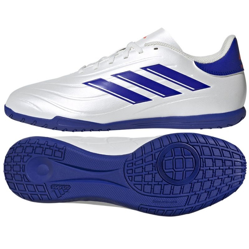 Predstavljamo muške nogometne cipele Adidas Copa Pure.2 Club u M IG8689 u elegantnoj bijeloj boji s plavim naglascima. Ove niske dvorane za čipke dizajnirane su za intenzivne igre u dvorani, pružajući optimalnu podršku i udobnost za svakog igrača.