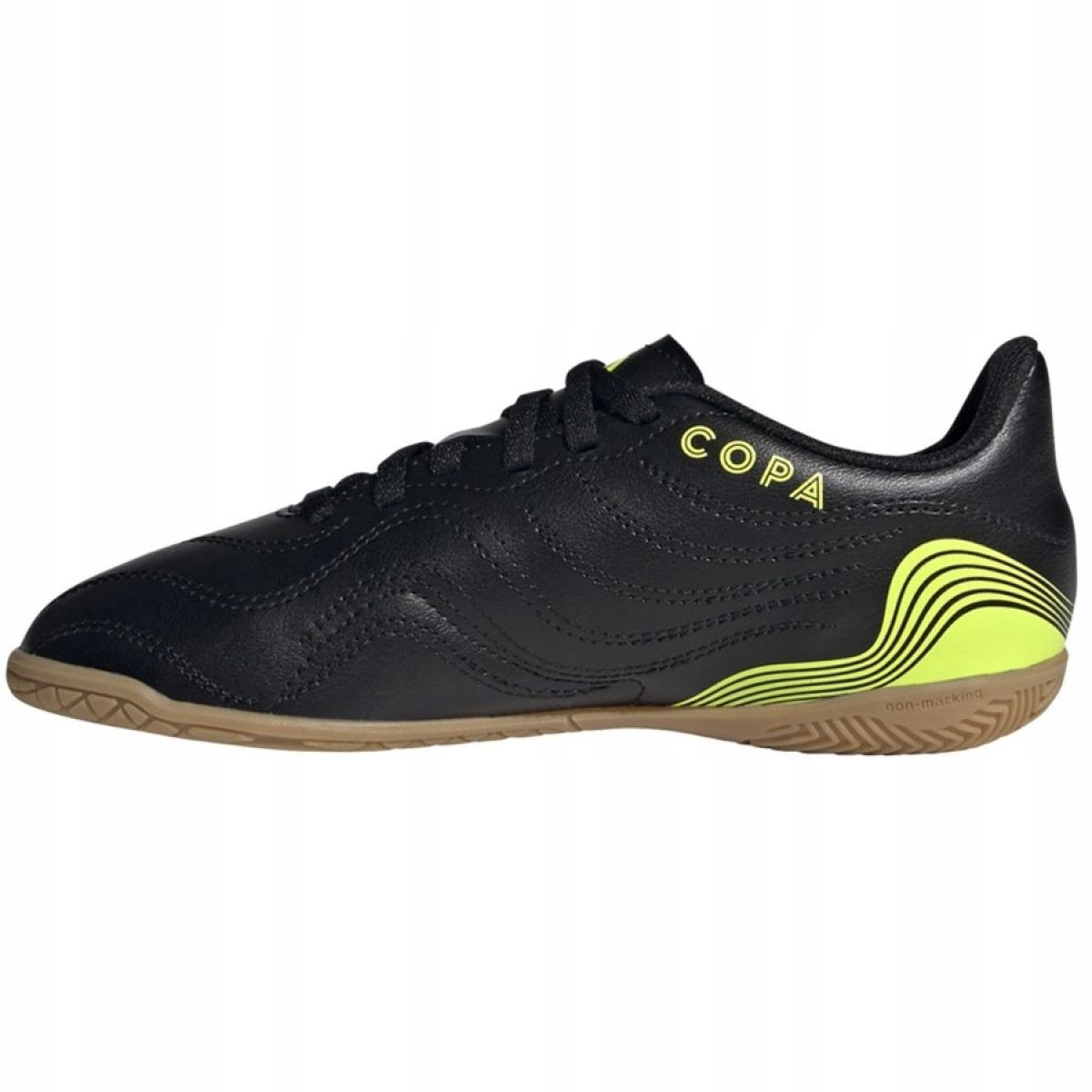 Adidas Copa Sence.4 In Jr FX1973 tenisice savršen su izbor za mlade nogometaše koji žele spojiti stil s funkcionalnošću dok igraju na dvoranskim površinama. U crnoj boji, ove elegantne kratke hlače za dvoranu klasičnog su dizajna koje će se sigurno svidjeti svakom dječaku.