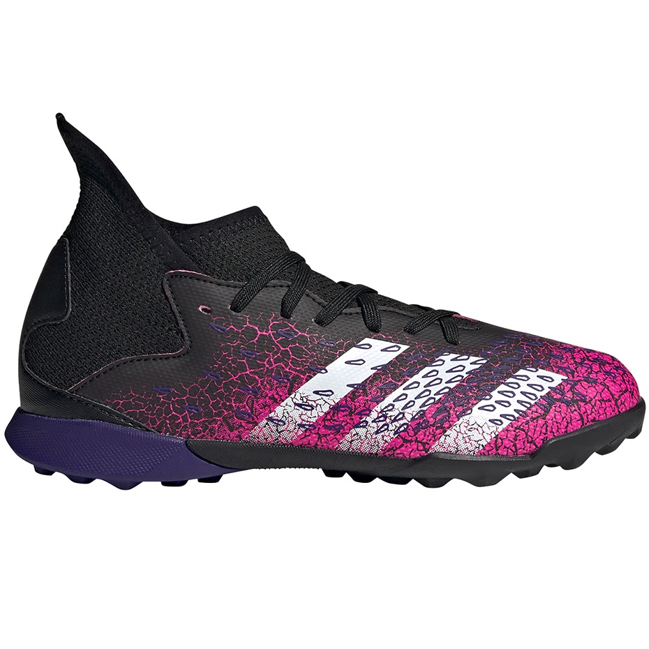Adidas Predator Freak.3 TF JR (FW7533) Nogometne cipele su model za mlade igrače, dizajniran za igranje na umjetnoj travi. Oni pripadaju kolekciji Superpertral i kombiniraju karakteristične elemente linije Predator (reljefna Demonscele struktura) s udobnom usklađivanjem ovratnika "čarape".