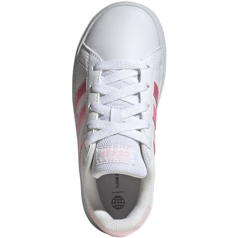 Otkrijte radost aktivnosti na otvorenom zahvaljujući Adidas Grand Court Lifestyle Tenis čipkaste cipele IG0440 u Whiteu. Ove elegantne cipele za djecu, posvećene djevojkama, kombiniraju udobnost i funkcionalnost, idealno prikladne za svakodnevne igre i sportske izazove.