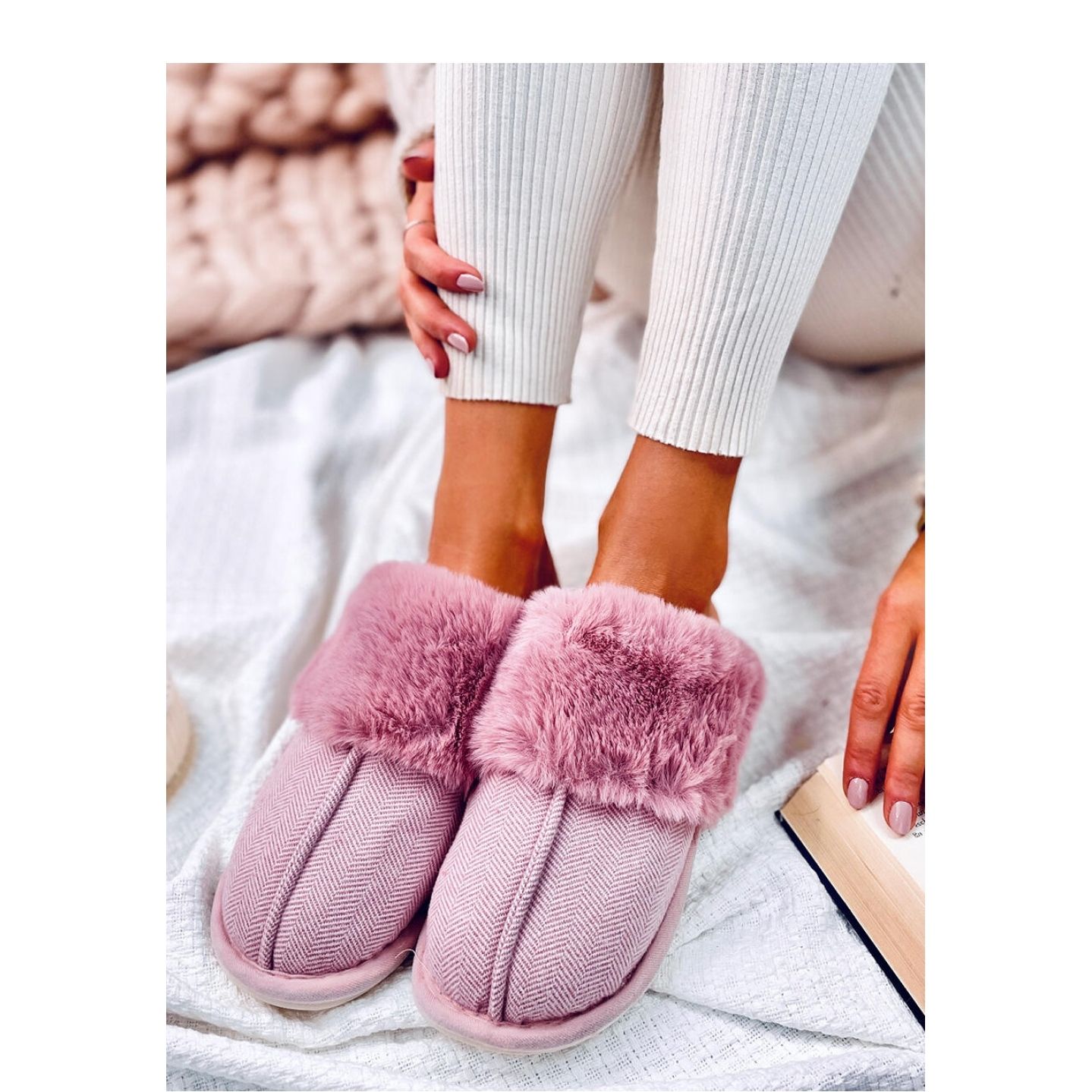 Pojedinosti: Allens Dusty Pink papuče riblja kost s krznom - Inello ružičasta