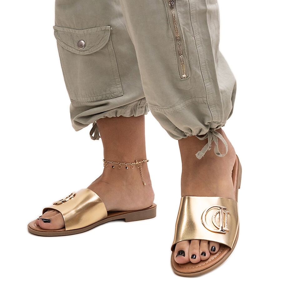 Almeita zlatne japanke s kopčom nezaobilazne su za nadolazeće ljetne dane! Njihov moderan dizajn spaja eleganciju i casual stil, što ih čini savršenim kako za plažu tako i za gradske izlete. Izrađene od visokokvalitetne gume, ove japanke ugodne su za nošenje i po najvećoj vrućini, a okrugli vrh naglašava njihov klasičan izgled.