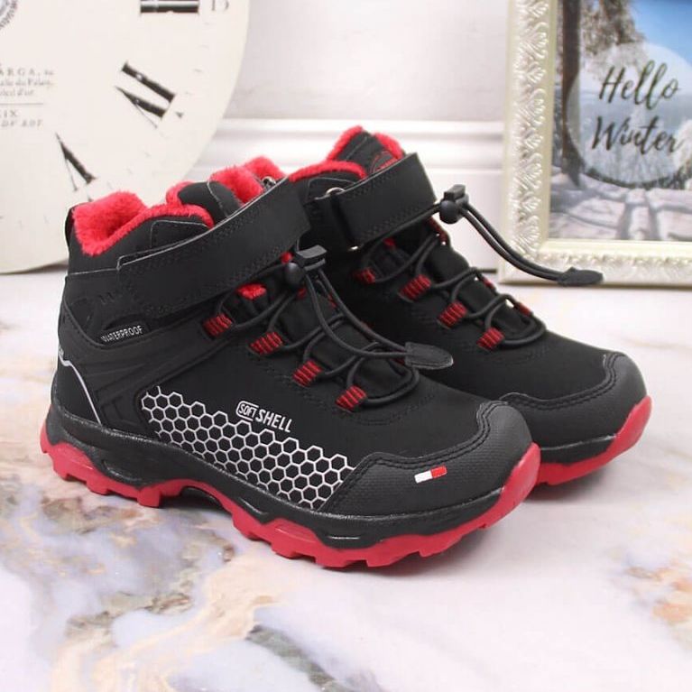 Vodootporne snježne čizme za Velcro American Club JR AM904B - Savršene zimske cipele za dječake, kombinirajući funkcionalnost i univerzalni izgled. Visoki rez pruža bolju zaštitu od snijega i hladnoće, a crna, prigušena boja odgovara mnogim zimskim stilizacijama.