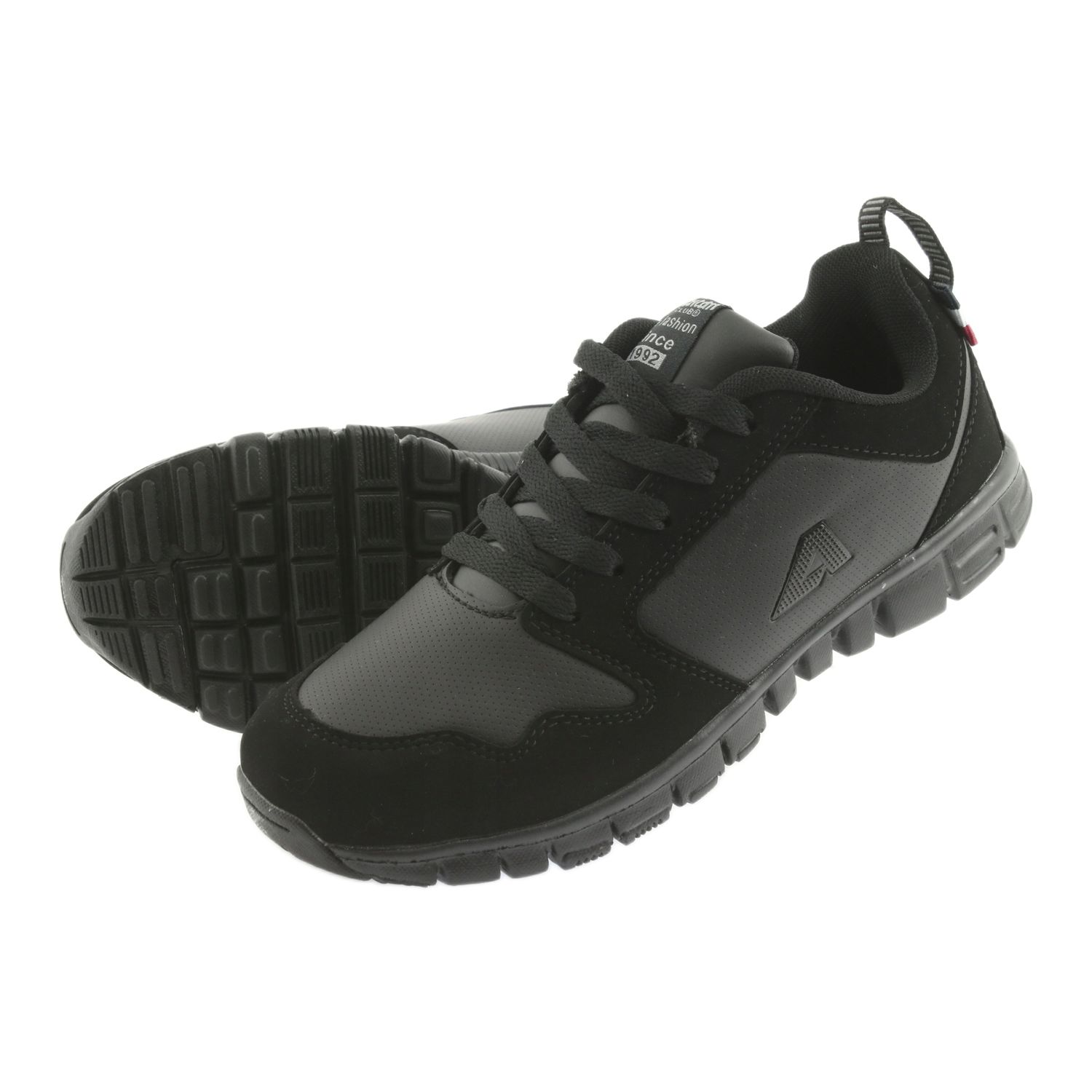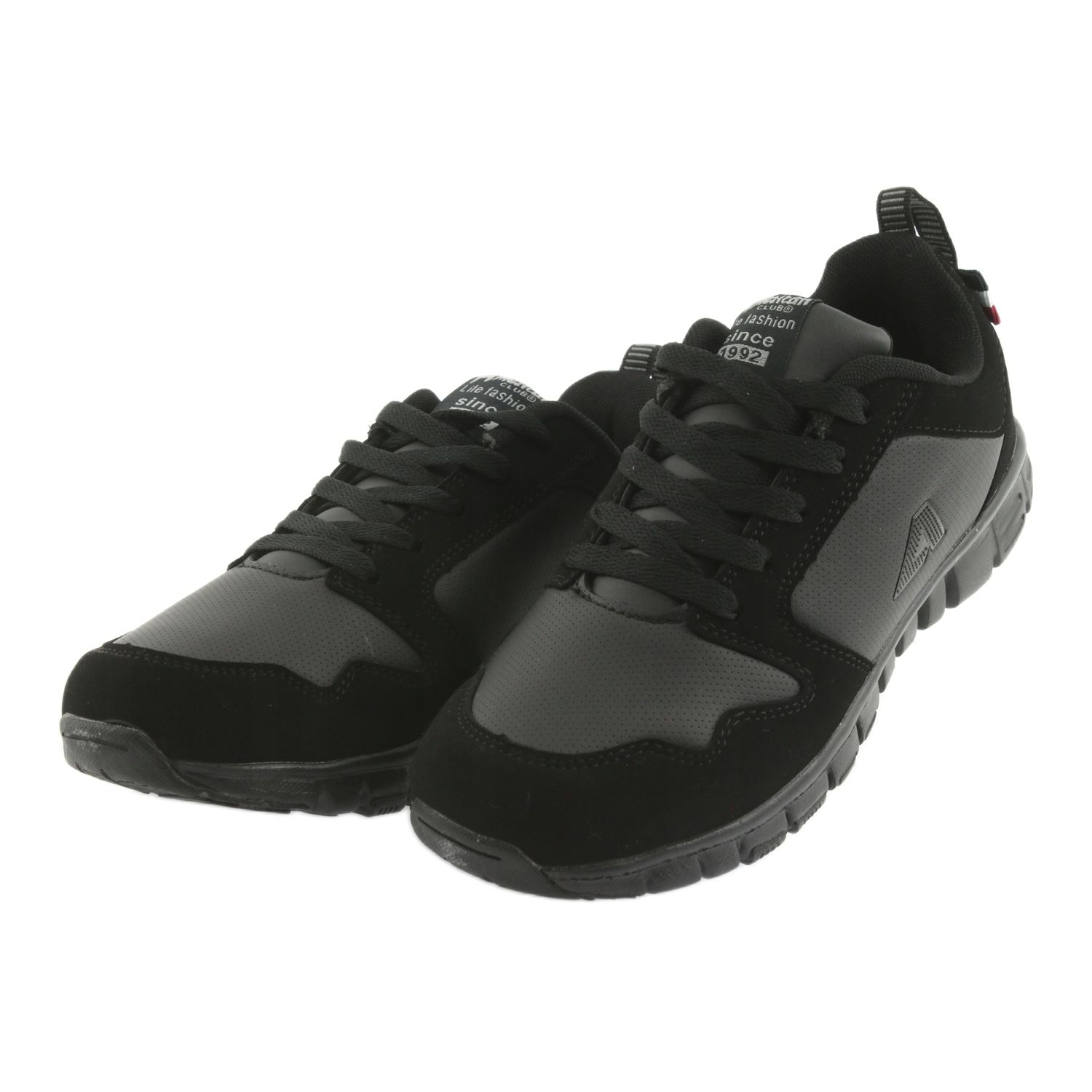 Američki klub FH16 - Ženske sportske cipele u elegantnoj, crnoj rati, kombinirajući udobnost s urbanim stilom. Izrađene u cijelosti od visokokvalitetne ekološke kože, izvrsni su i za laganu fizičku aktivnost i za svakodnevnu upotrebu - šetnje gradom ili brzim rezultatima.
