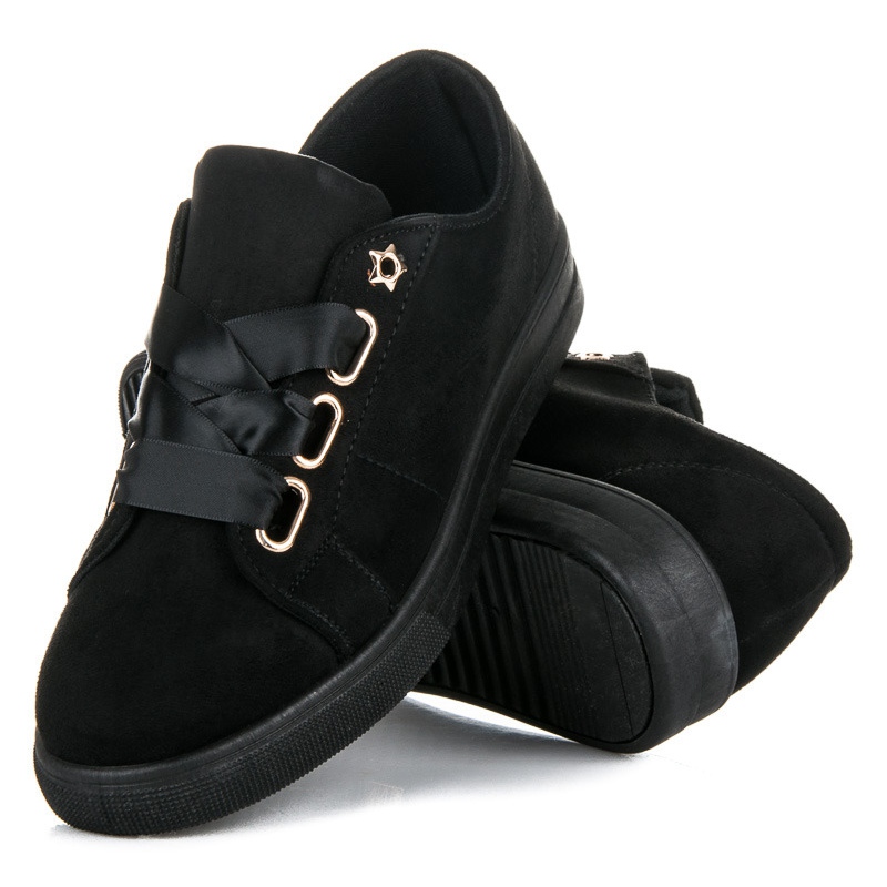 Pojedinosti: Ideal Shoes Antilop tenisice s vrpcom crna