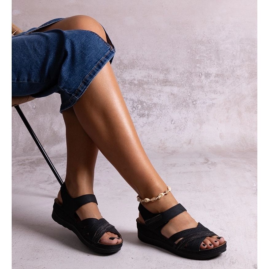 Areja crne niske sandale na klin crna