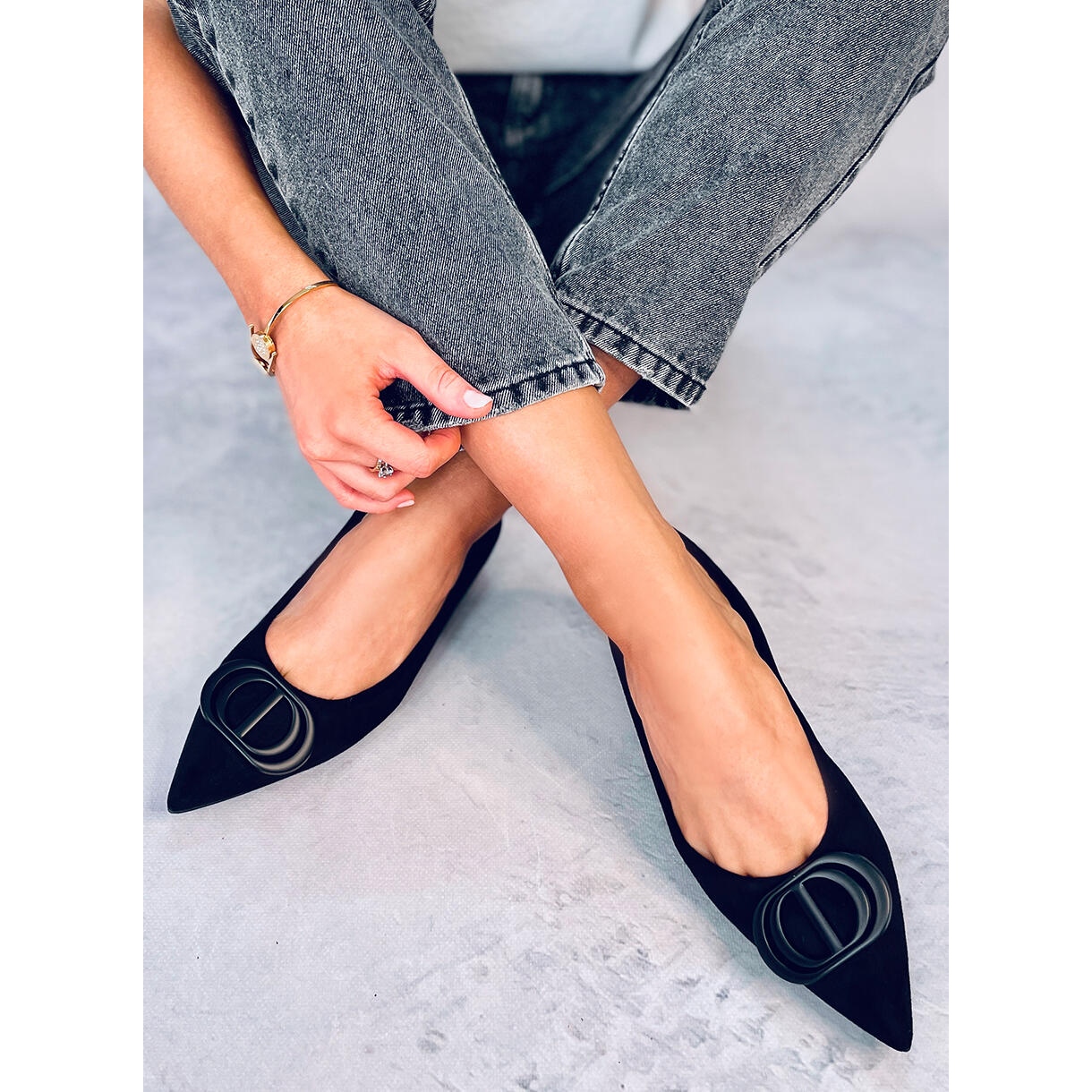 Elegantne ženske crne ženske balerine u crnoj boji obavezne su u svakoj ženskoj garderobi. Model se razlikuje od bademovog nožnog prsta i suptilna primjena s prednje strane, što dodaje karakter bez pretjerivanja. Delikatno povećanje (približno 1 cm) pruža blagu udobnost tijekom hodanja, održavajući ravan, ženstveni rez.