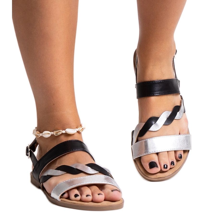 Detalji: Asfoure srebrne i crne sandale od eko kože srebro