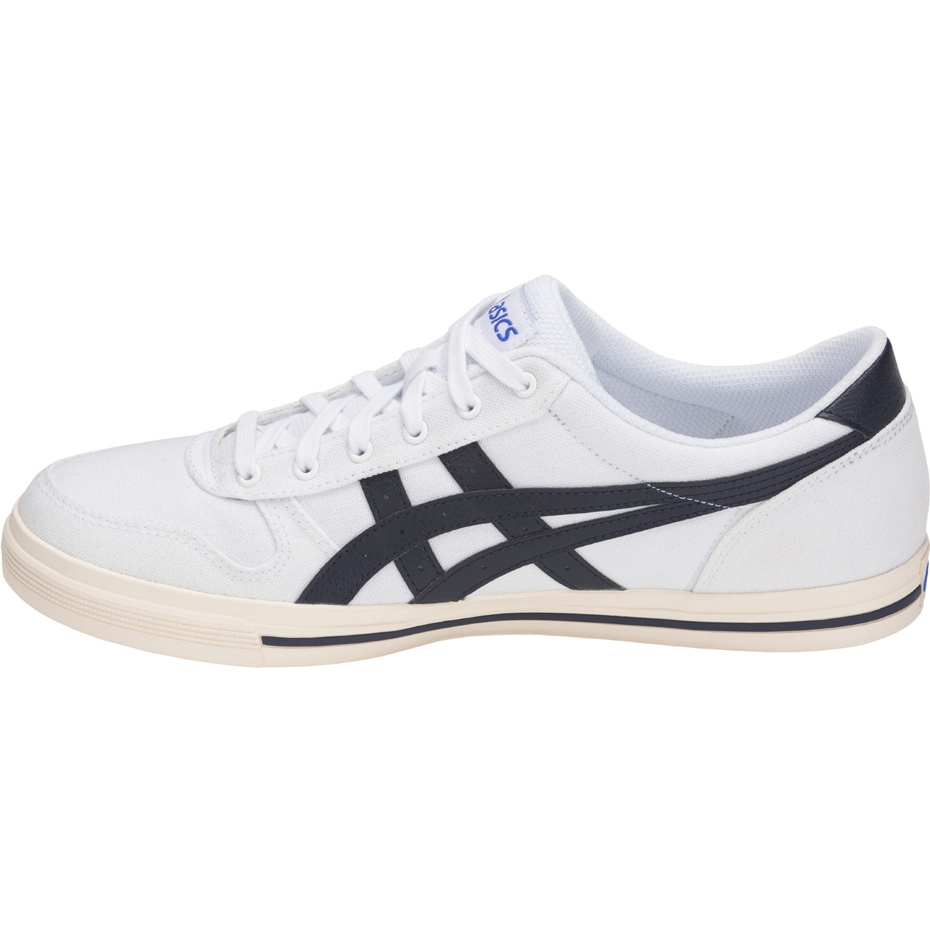 Klasični, udobni asics aaron City cipele savršene svaki dan. Niska silueta i univerzalne boje (bijela s mornarsko plavim naglascima) čine ih dobro s ležernim stilizacijama. Gornja izrađena od visokokvalitetnog materijala osigurava izdržljivost, a gumeni potplat daje dobro prianjanje i udobnost tijekom svakodnevne uporabe.