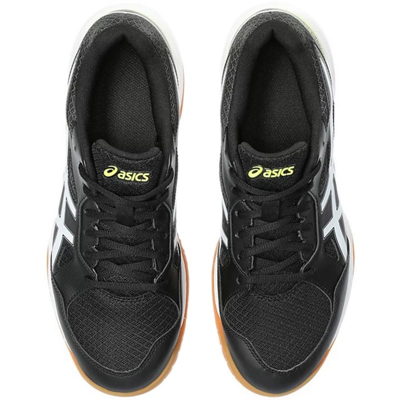 Praktične i elegantne Asics cipele u dominantnoj crnoj boji, s bijelim detaljima, savršen su spoj funkcionalnosti i modernog dizajna. Zatvaranje na vezanje omogućuje precizno prilagođavanje obuće individualnom obliku stopala. Gumeni potplat dizajniran je za visoko prianjanje, što je iznimno važno na unutarnjim površinama, te ima svojstvo da ne prlja parket.