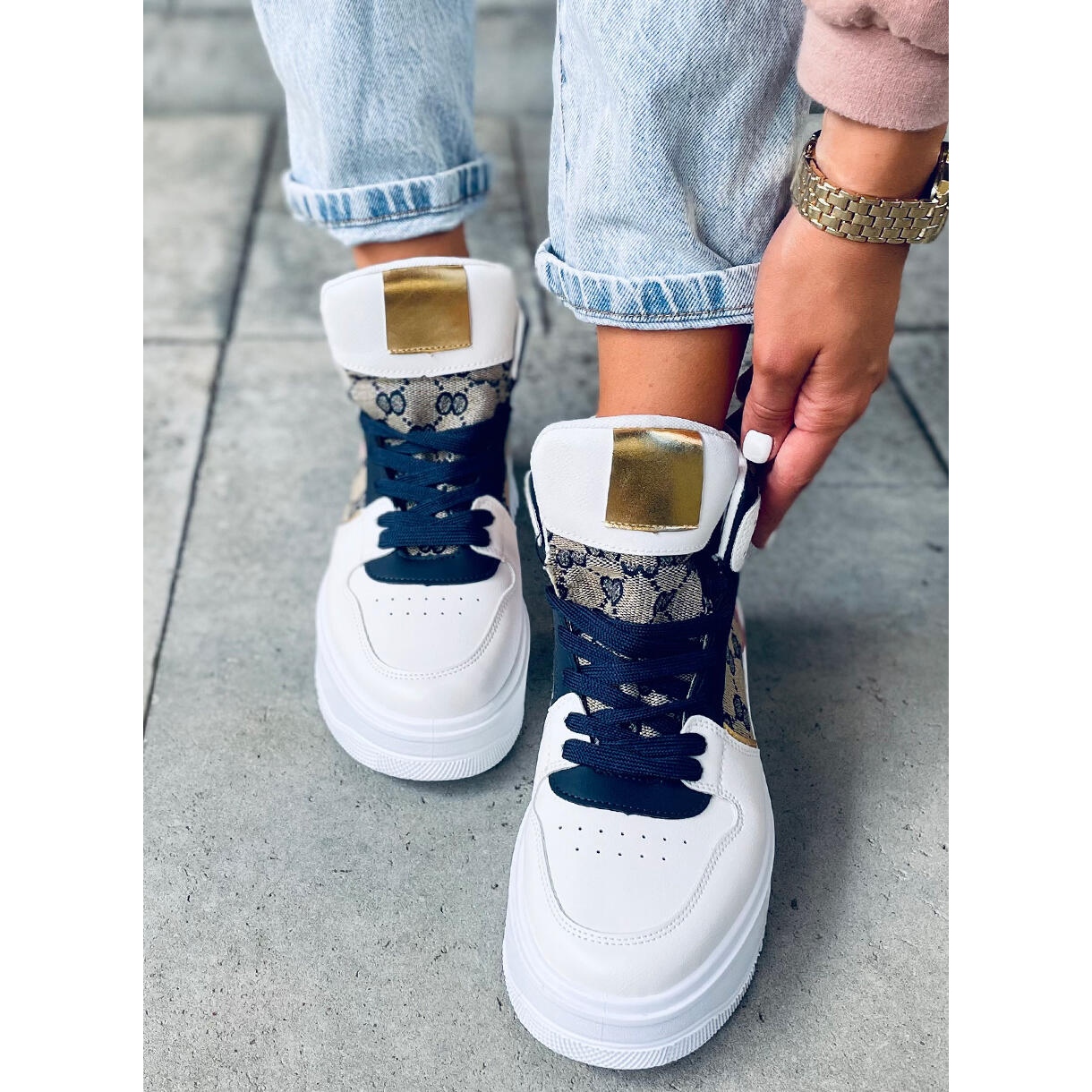 Otkrijte moderne Axel Navy visoke sportske cipele u bijeloj boji s raznobojnim detaljima koje će oduševiti svakog ljubitelja stila i udobnosti. Ove ženske cipele spajaju najnovije trendove i funkcionalnost, nudeći visoku platformu koja će dodati karakter svakom stajlingu.