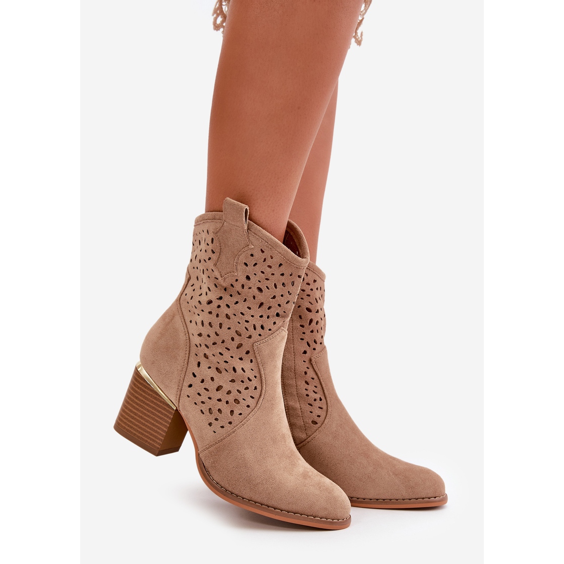 Detalji: Ažur gležnjače od eko antilop kože, kopčaju se patentnim zatvaračem, tamno bež Sevana