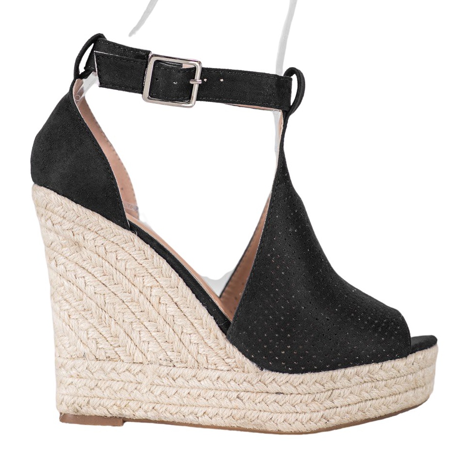 Pojedinosti: SHELOVET Ažur sandale na klin crna