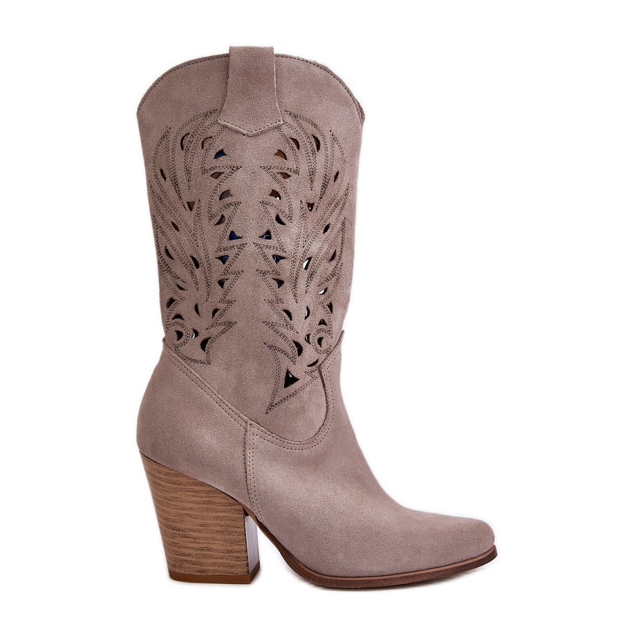 Lewski Ažurirane čizme do sredine lista na visoku petu Suede Lewski 3609 Cappucino bež