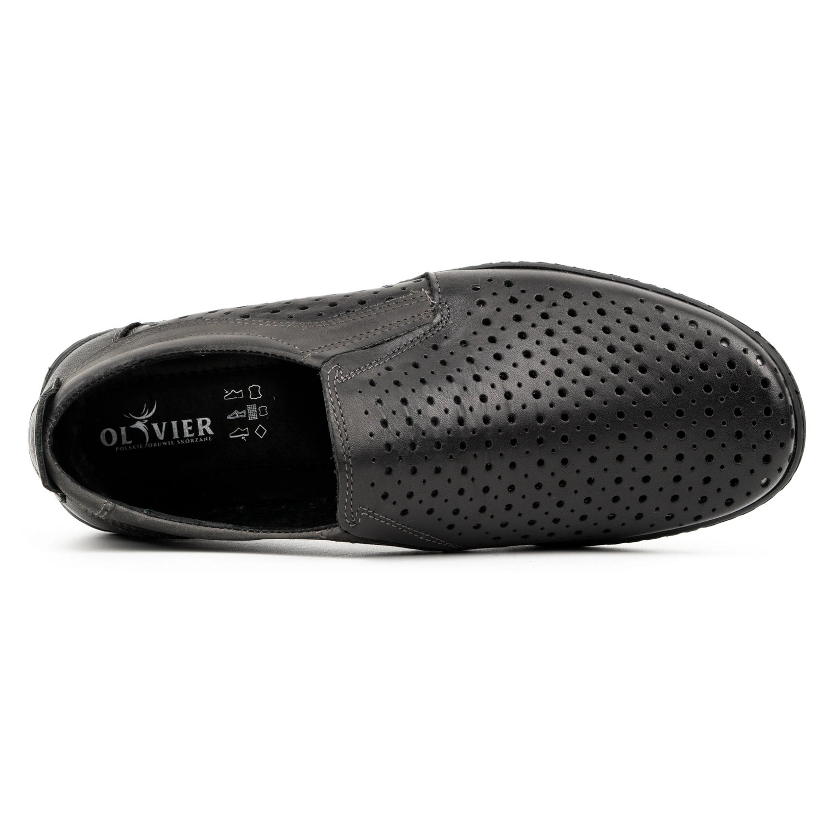 Openwork Loafers za Olivier za ljeto 662 Black odličan je izbor za muškarce koji žele kombinirati eleganciju s utjehom. Ove elegantne kožne cipele karakteriziraju moderan dizajn i brojne rupe koje pružaju izvrsnu ventilaciju, što je neprocjenjivo u vrućim danima. Zahvaljujući tome, stopala će vam se osjećati svježe i ugodno, eliminirajući problem pretjeranog znojenja.