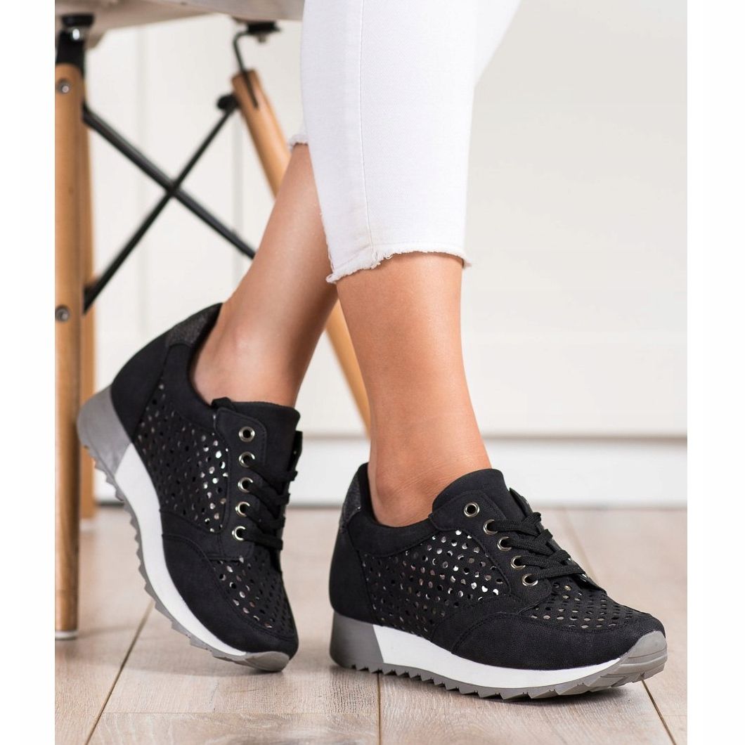 Kylie Openwork Platform Shoes u crnoj je jedinstvena sportska obuća koja spaja moderan dizajn i udobnost. Izrađene od visokokvalitetne ekološke kože, cipele oduševljavaju ažurnim uzorkom koji im daje lakoću i čini ih savršenim za tople dane.
