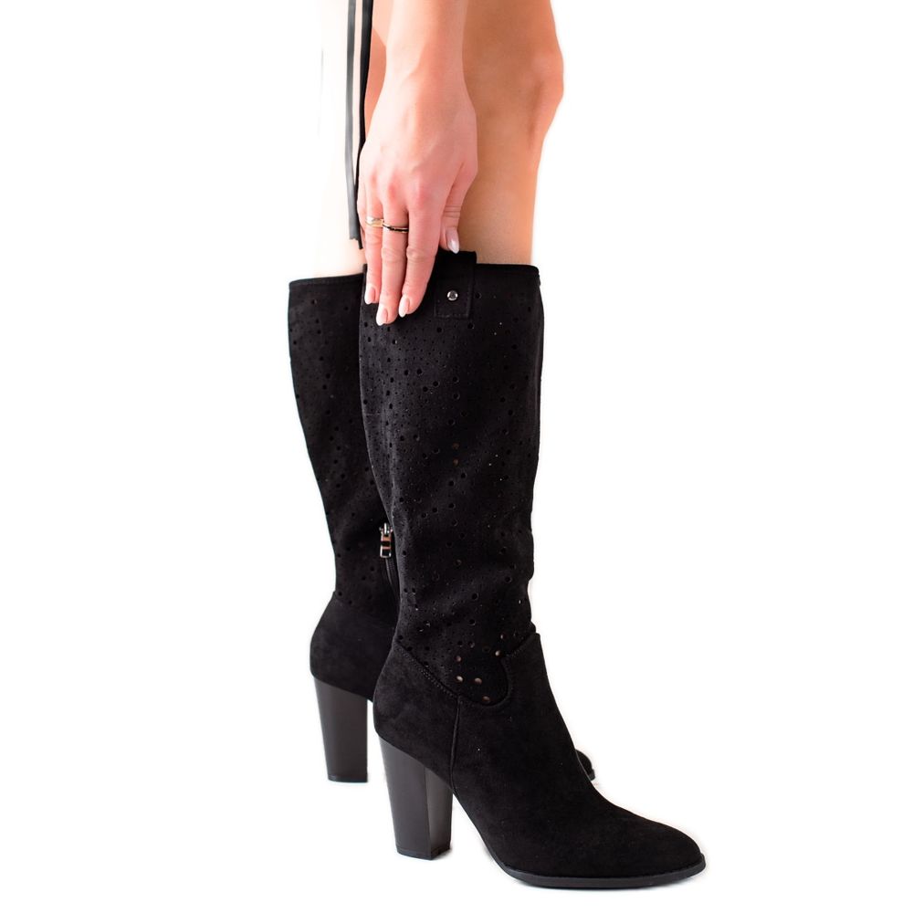TRENDI Ažurne čizme na postu crna