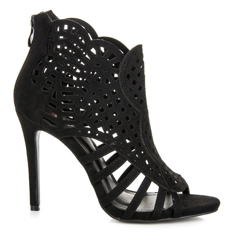 Openwork Seastar sandale u crnoj boji savršen su izbor za žene koje žele spojiti eleganciju s modernim dizajnom. Ove jedinstvene cipele na visoku petu u obliku stiletto sežu do gležnjeva, a njihov fascinantan ažur uzorak mami poglede, čineći cijeli izgled originalnim. Zahvaljujući patentnom zatvaraču, obuvanje i skidanje je brzo i praktično.