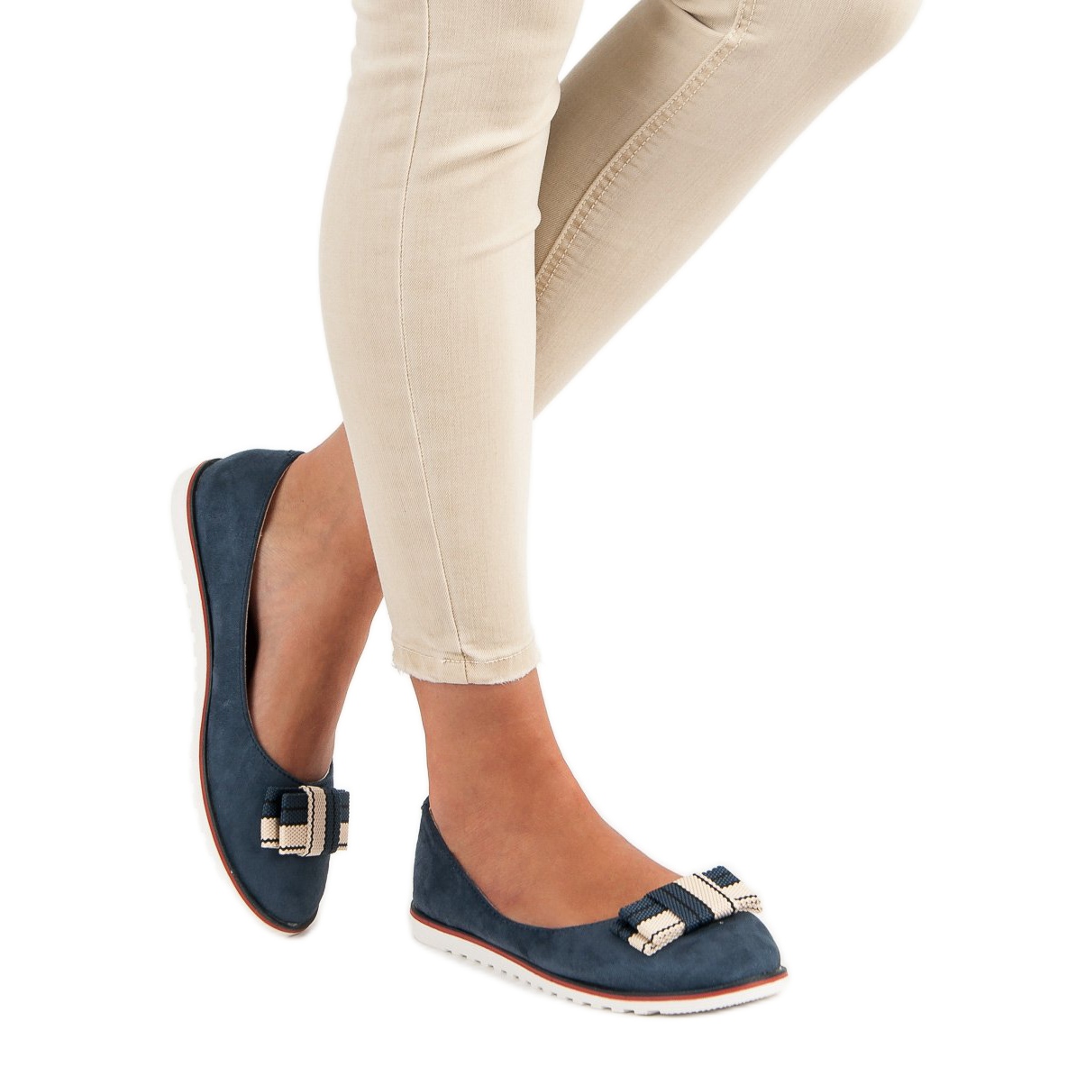 Predstavljamo smeđe i tamnoplave balerinke od brušene kože koje spajaju eleganciju i udobnost! Izrađene od ekološki prihvatljivog antilopa, ove su cipele savršen izbor za žene koje vole ležeran stil. Otkrijte njihov jedinstveni dizajn - kombinaciju tamnoplave, smeđe i bijele, kao i suptilnu mašnu na prednjoj strani koja dodaje šik.