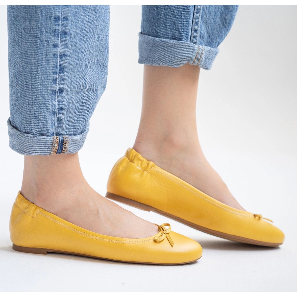 Marco Shoes Marco Shoes Balerinke od nježne zrnate kože žuta boja