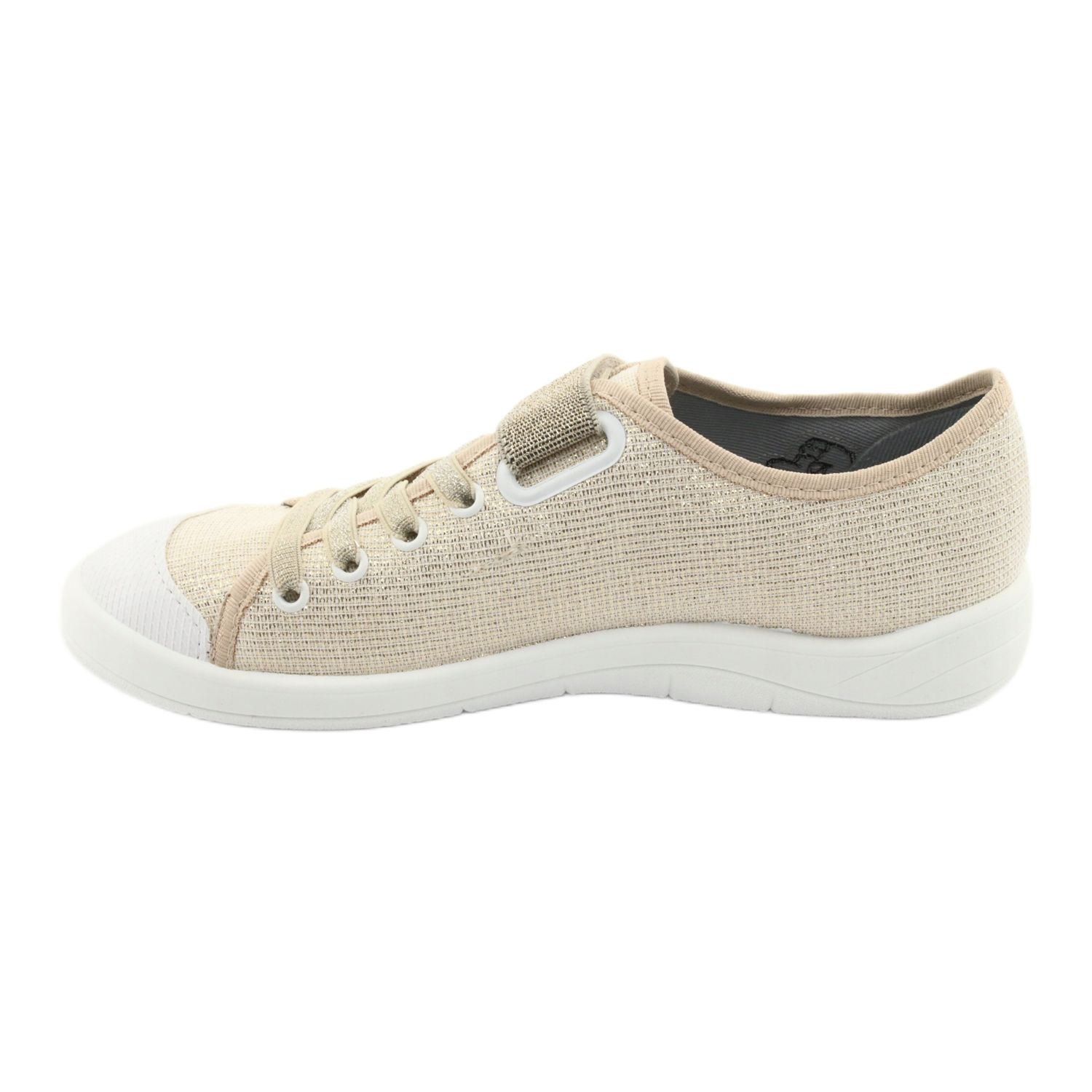 Otkrijte fantastičnu dječju obuću Befado 251Q098 u zlatnoj boji koja će oduševiti svaku mladu damu! Ovaj model s debljim potplatom savršeno se uklapa u sportski stil, a originalni uzorci privlače pažnju i daju karakter svakom stajlingu. Zahvaljujući upotrebi čičak kopče i gumenih traka na mjestu vezica, cipele savršeno pristaju uz nogu, što osigurava udobnost tijekom nošenja.