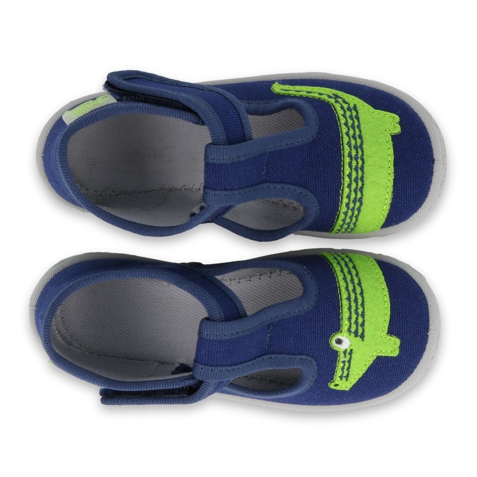 Boja obuće je duboka tamnoplava nijansa koja je univerzalna i otporna na prljavštinu. Na prednjem dijelu cipelica, iznad zaobljenih vrhova, nalazi se šarmantan zeleni umetak s motivom krokodila koji će se svakako svidjeti djeci koja zanimaju životinje ili vole energične i zabavne dodatke svojoj garderobi.
