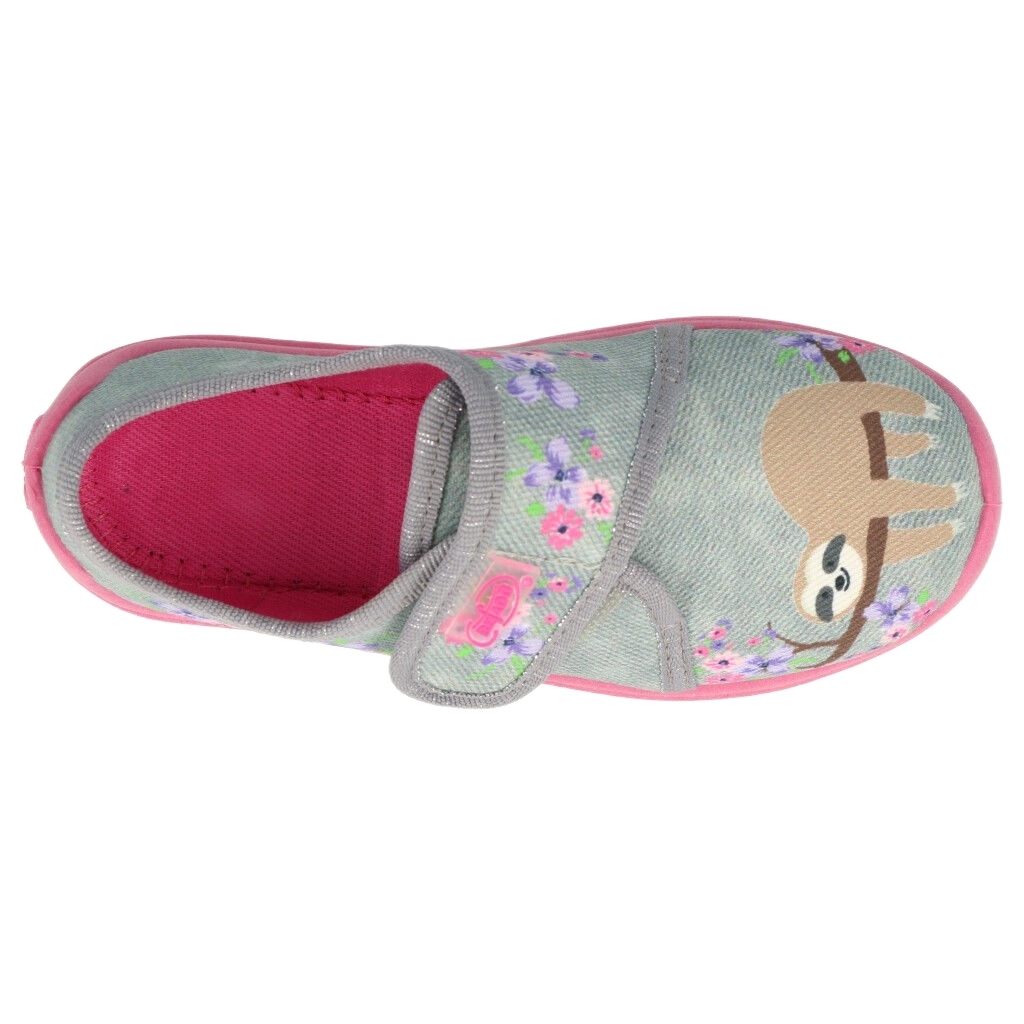 Dječje papuče Befado 560x171 - Praktičnost i stabilnost za mala stopala. Delikatna tkanina u šarmantnim bojama u boji ružičaste boje pruža djevojčicama estetski izgled, a promišljeni dizajn usredotočen je na udobnost nošenja. Čvrsta peta stabilizira petu, podupirući ispravnu postavku stopala dok hoda, dok praktično pričvršćivanje na čičak omogućava brzo i prikladno uklapanje obuće.