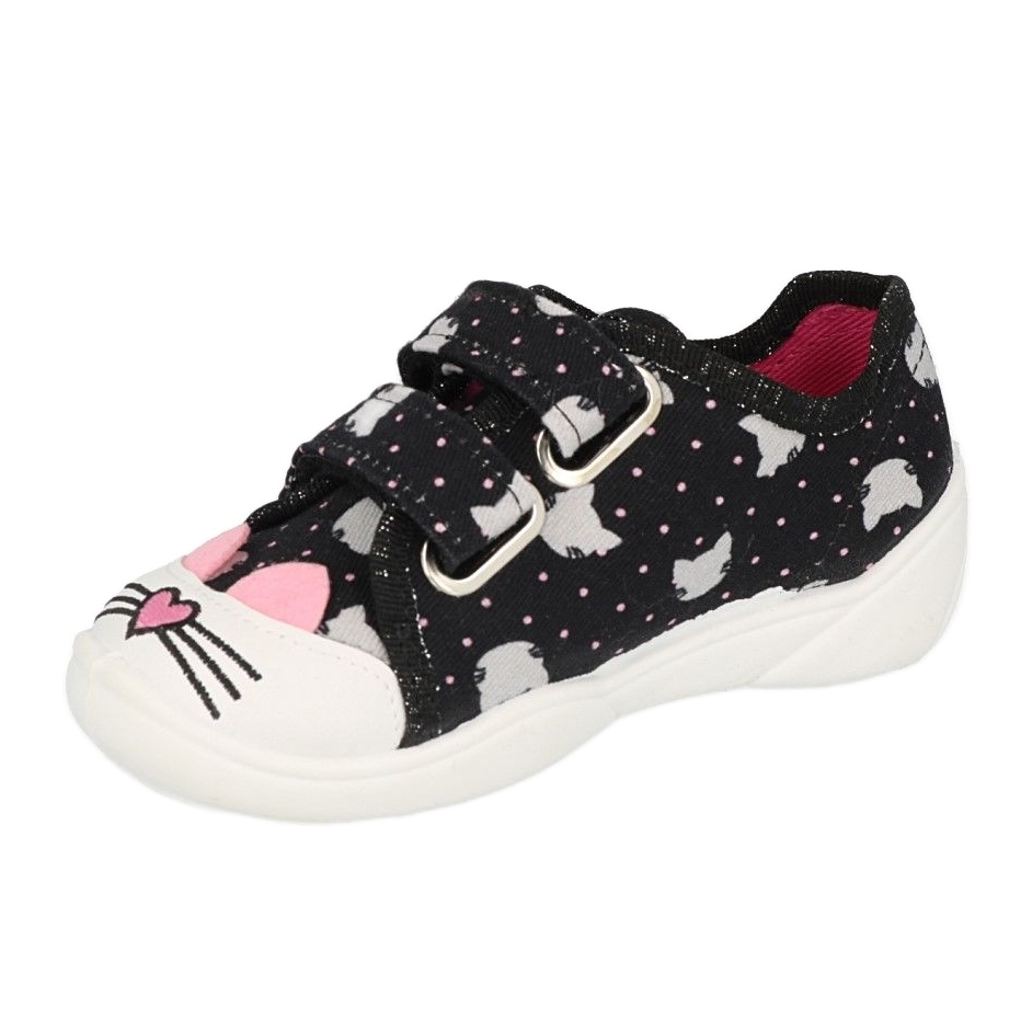 Ovdje su dječje cipele Befado 907P151 koje će oduševiti svaku djevojčicu! Ove šarmantne crne tenisice s ružičastim detaljima ističe se maštovitim motivom mačke na vrhovima koji će zasigurno privući pažnju mališana.