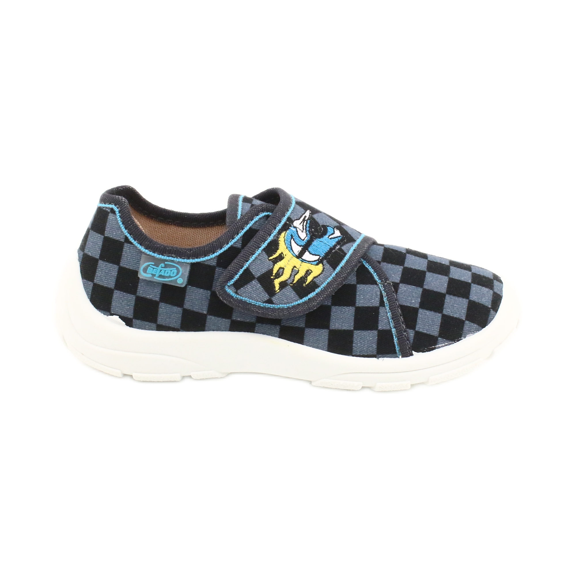 Dječja obuća Befado 974X411 savršen je izbor za male istraživače koji cijene udobnost i stil. Izrađene od visokokvalitetne tkanine, ove crno-sive papuče spajaju funkcionalnost i atraktivan dizajn. Gornjište s plavo-crnim kariranim uzorkom i ukrasnom zakrpom dodaju karakter pa ih svako dijete želi nositi.
