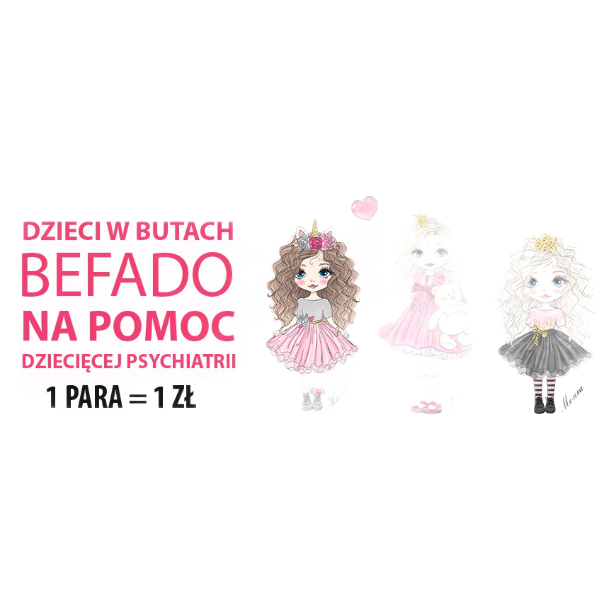 Dječje cipele Befado Blanka u mornarsko plavoj i srebrnoj boji savršen su izbor za male princeze koje žele spojiti udobnost s modernim izgledom. Dio ograničene kolekcije osmišljene za potporu dječjoj psihijatriji, svaka kupljena obuća pridonosi pomoći djeci u potrebi - jedan par vrijedi koliko i 1 PLN doniran za ovu plemenitu svrhu.