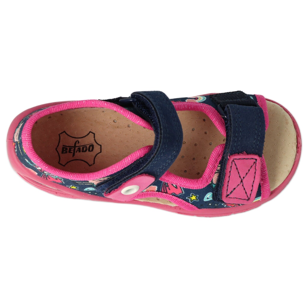 Dječje sandale Befado PU 065P172 savršen su izbor za svaku malu fashionisticu. Ove šarene cipele u nijansama tamnoplave i ružičaste spajaju udobnost i moderan dizajn zbog čega se savršeno uklapaju uz razne ljetne stilove.