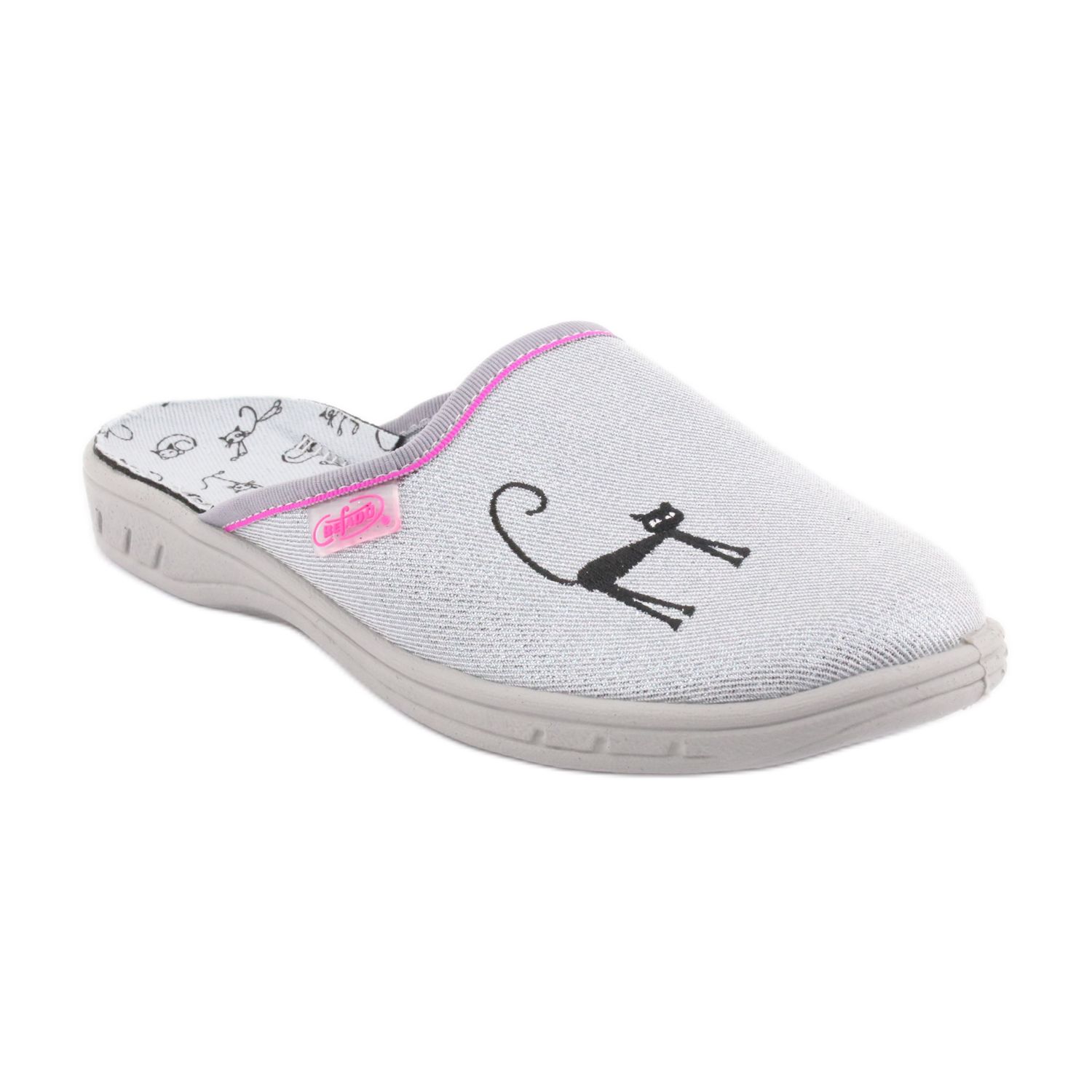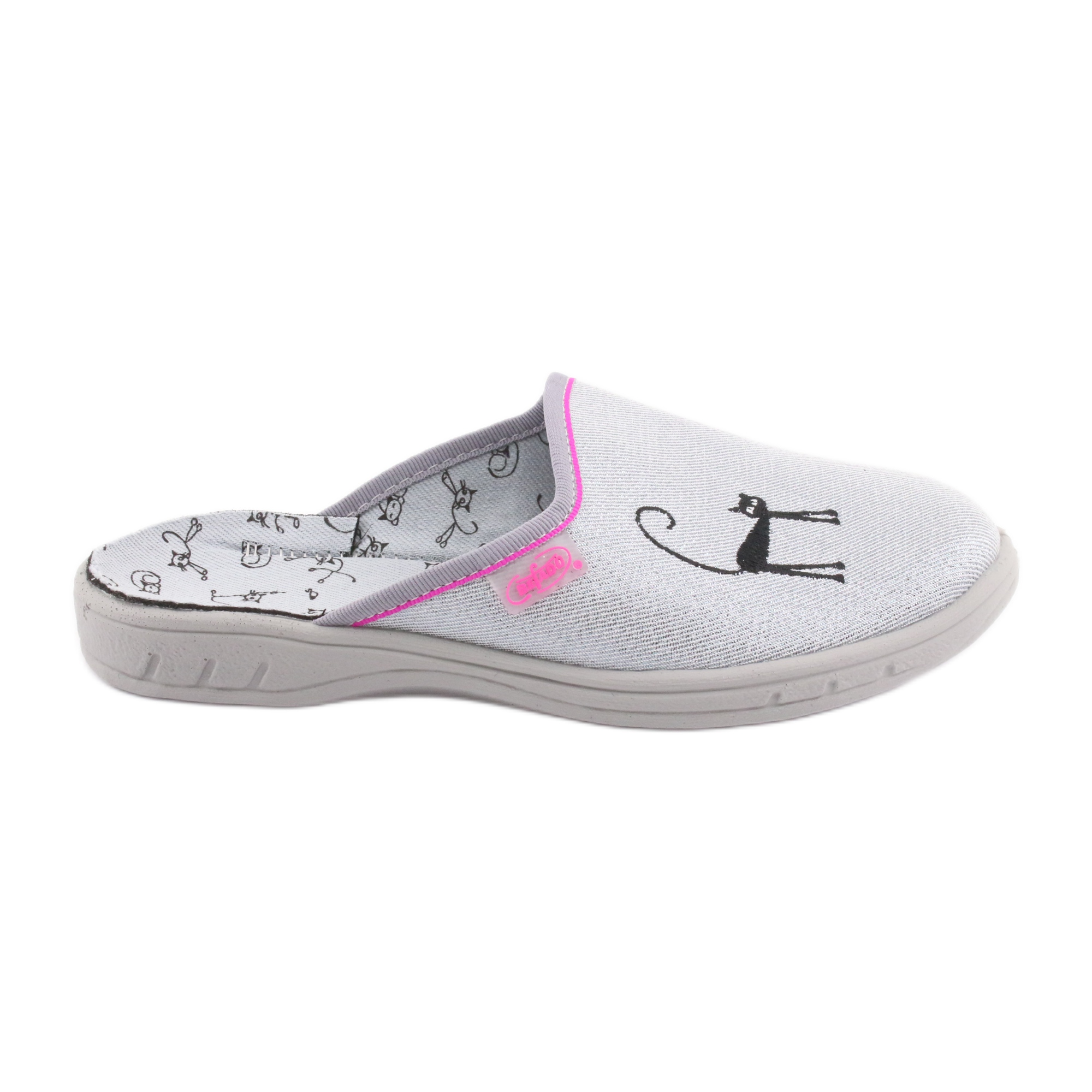 Predstavljamo prekrasne Befado 707Y398 japanke u ukusnoj sivoj boji koje će oduševiti svaku djevojčicu! Ove unikatne papuče, ukrašene šarmantnim aplikacijama crnog mačka, savršen su izbor za vrtić, školu i svaki dan kod kuće.