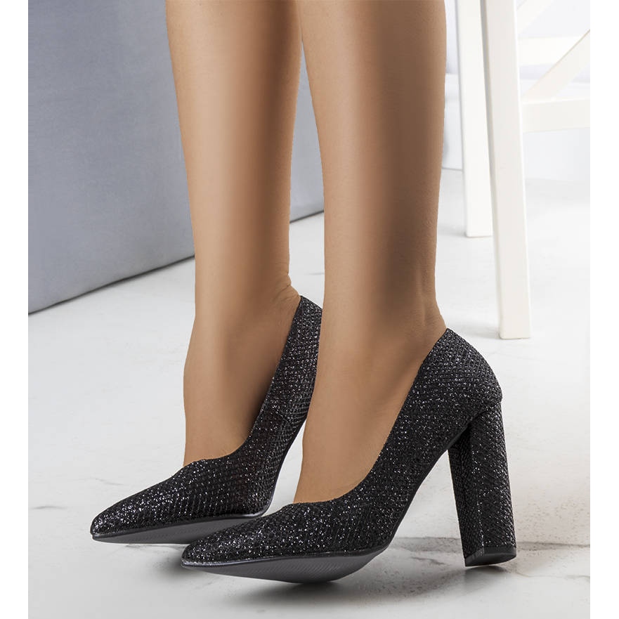 Pojedinosti: BM Belle crne brokatne cipele s petom crna