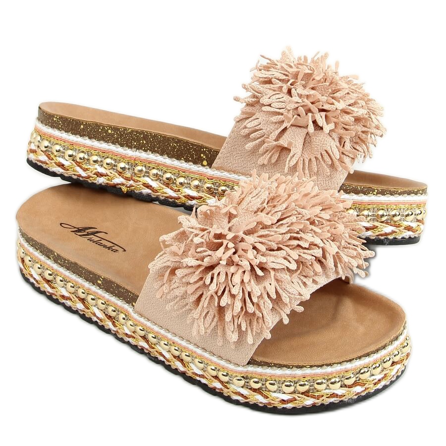 Inna marka Bež 2260 Bež papuče na ukrašenom potplatu