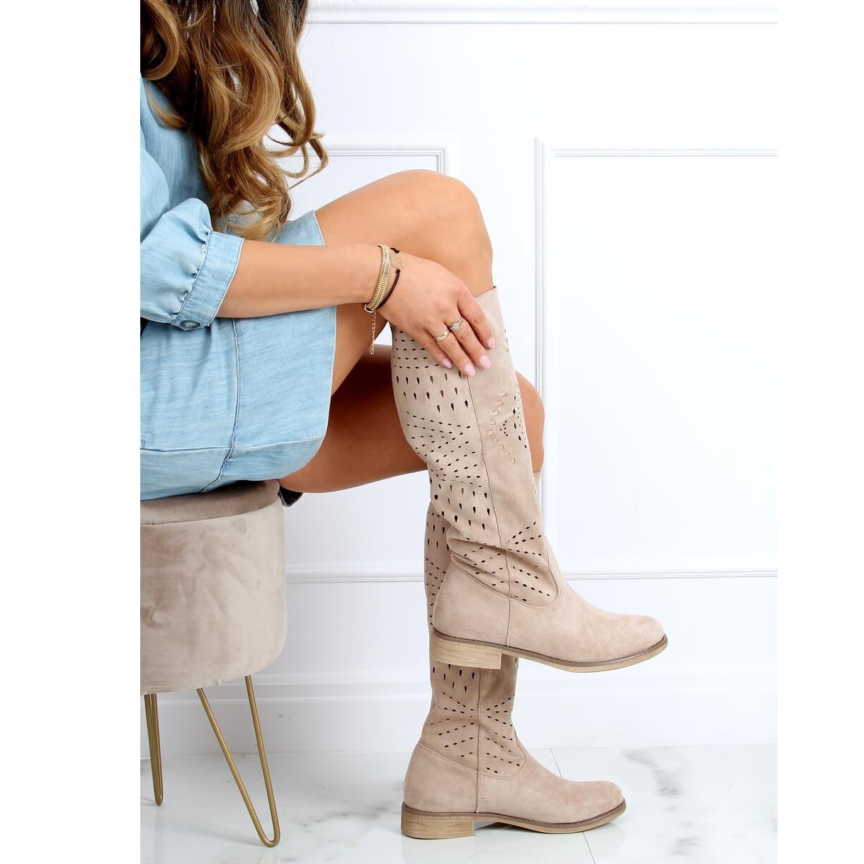 Pojedinosti: Bež ažurne čizme ST-53P Bež