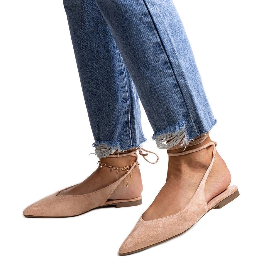 Detalji: Bež balerinke Leaia na vezanje s otvorenom petom