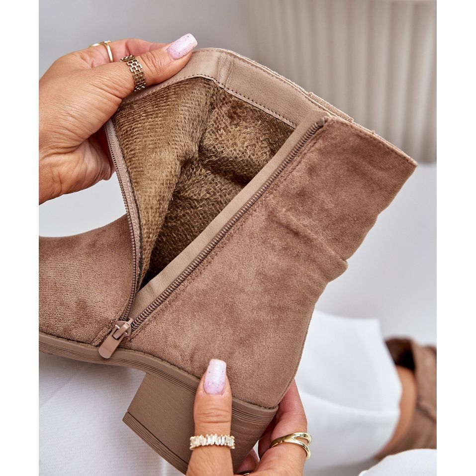 Detalji: Bež bež ženske izolirane gležnjače Zinanya s naboranim gornjištem i niskom petom