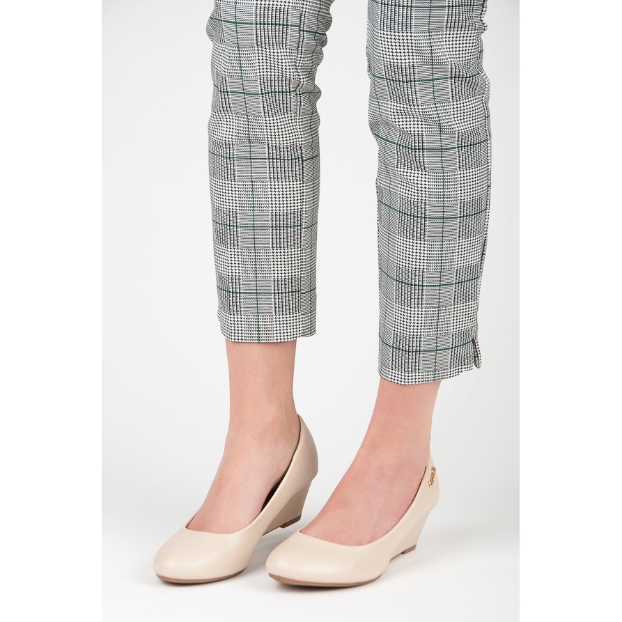 Izrađene od visokokvalitetne ekološke kože, cipele ne samo da izgledaju sjajno, već su i ekološki prihvatljive. Okrugli vrh i kopčanje na slip-on osiguravaju udobnost nošenja tijekom cijelog dana, a klin od 5 centimetara dodaje eleganciju i optički izdužuje figuru.