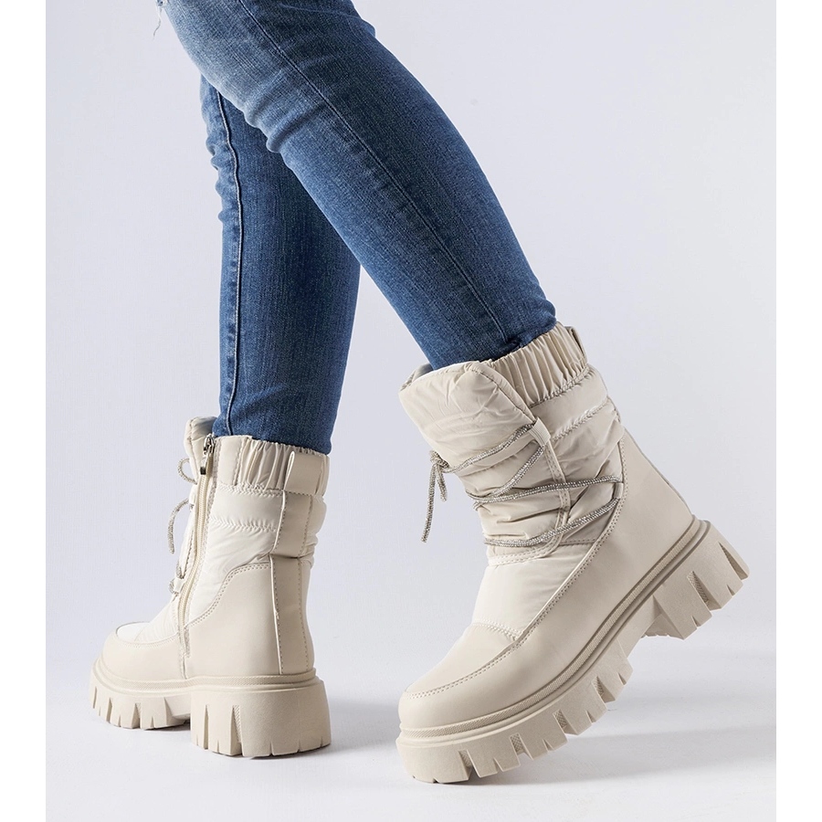 Pettenasco bež snježne čizme s cirkonima - stil i udobnost za hladne dane