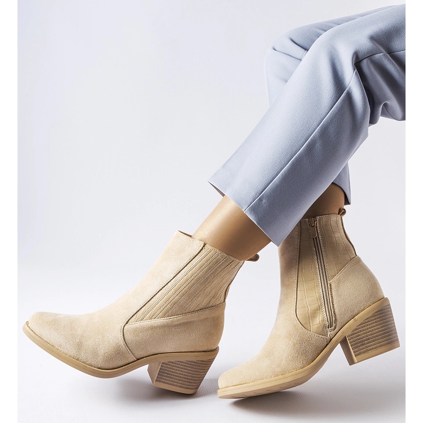 Inna marka Bež gležnjače od eko brušene kože s niskom petom Sovere