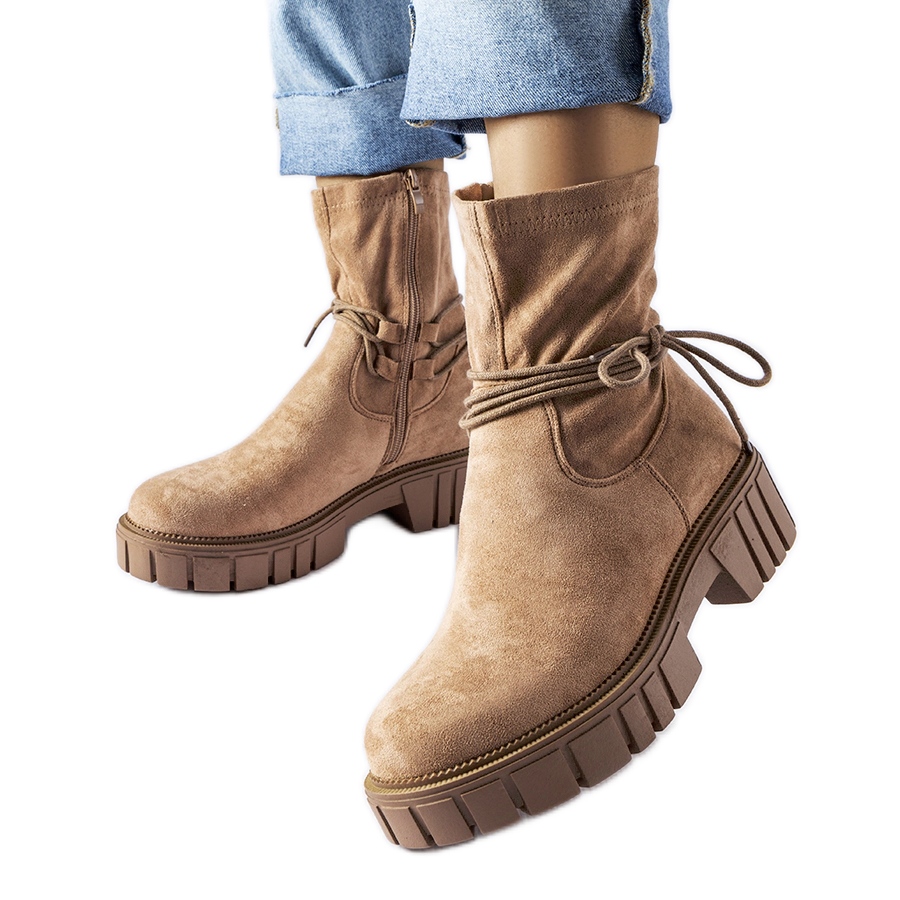 Beige Averardo čizme iz kolekcije Keeshoes univerzalni je i moderan model gležnja, izrađen od suede ekološke kože u nijansi "Nude Seede". Kombinacija suptilne boje, okruglog nosa i ukrasnog vezanja daje klasičan i moderan učinak - idealan za mnoge stilove.
