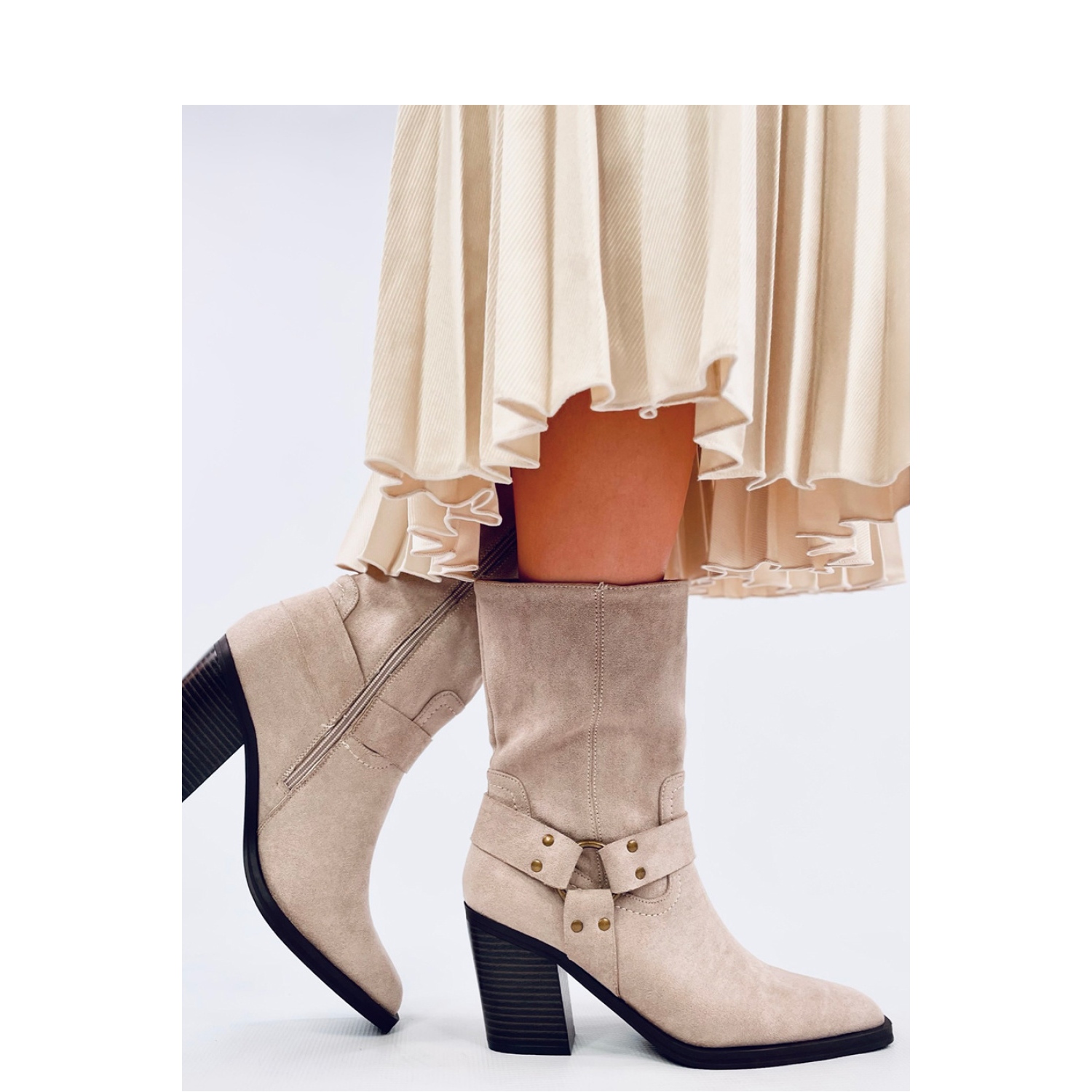 Detalji: Bež kaubojske čizme od brušene kože