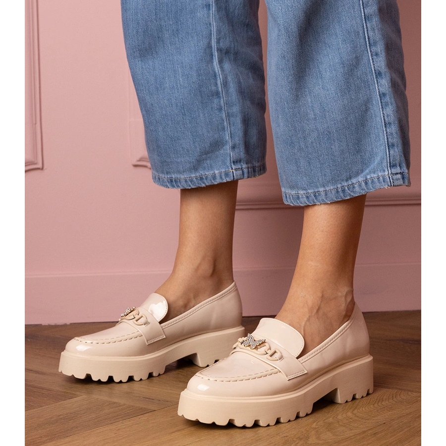 Inna marka Bež lakirani loaferi s leptirom cirkona