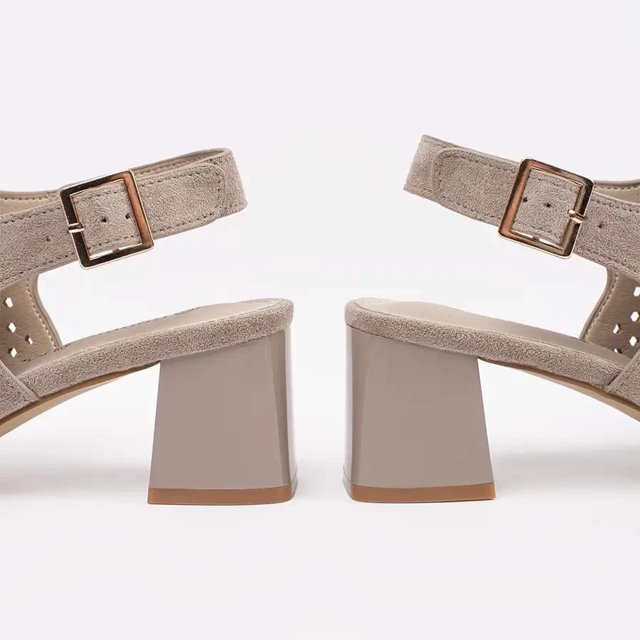 Sandale s otvorenim ormarićima s visokim potpeticama odličan su izbor za žene koje žele kombinirati eleganciju s udobnošću i modernim izgledom. Izrađene od ekološke antilop, ove sandale razlikuju se suptilnim, otvorenim uzorkom, koji ne samo da impresionira estetikom, već također pruža veliku ventilaciju, savršenu za tople dane.