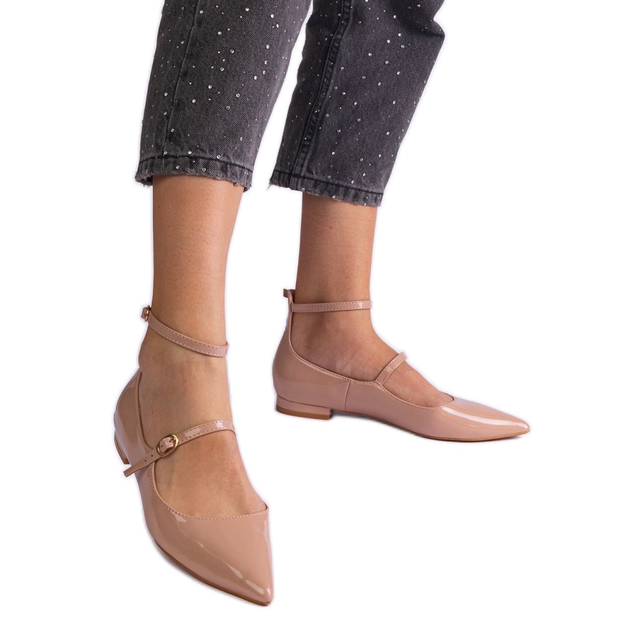 Inna marka Bež pumpe lakirane ravnim potpeticama s bež kopčama