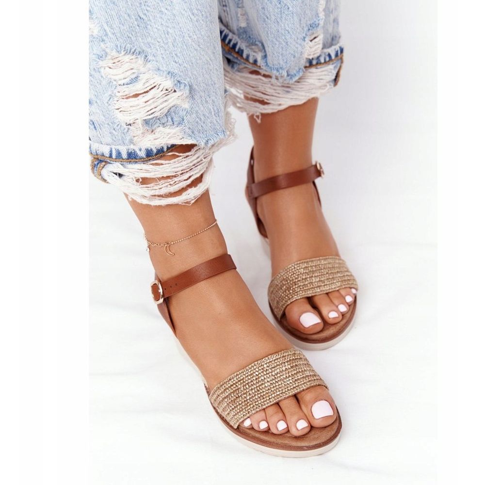 Detalji: EVE Bež sandale na klin peti s pletenicama na Tenerifima smeđa