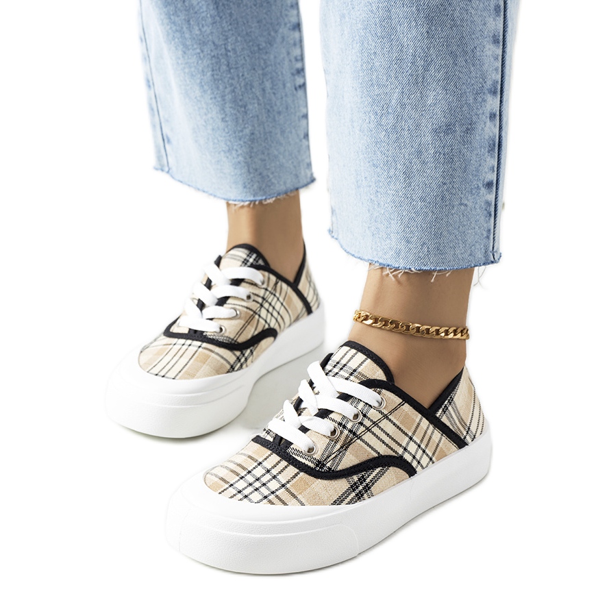 Ljetne tenisice koje će dodati karakter bilo kojoj stilizaciji. Modni, visoki potplat (platforma od 3 cm) dobro se slaže s originalnim kariranim gornjim dijelom, a neutralna bež boja čini ih vrlo svestranim. Izrađene od visokokvalitetnih tkanina, oni cijeli dan osiguravaju udobnost.
